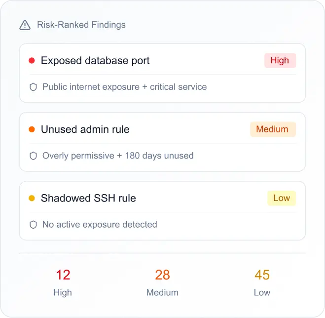 Everything you need for continuous policy governance — from visibility to governed action, enhanced with AI, vulnerability, and IPAM context.